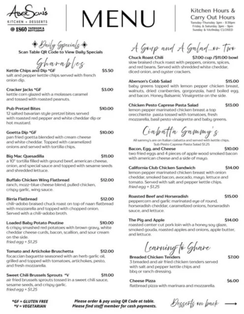 At our core, we are craft beer; working to source locally & nationally the best craft beers available. We feature 16 rotating craft beer taps with growler fill capability, single craft beer can/bottle sales, a packaged beer section, a vast bourbon selection, wine. We have a kitchen that offers a full menu operated by AberSon’s.