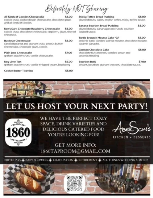 Located in the Heart of Harrison’s Historic Downtown District, 1860 Taproom offers a venue for business lunches, birthday parties, bridal showers, baby showers, retirement parties and a wide array of other special occasions